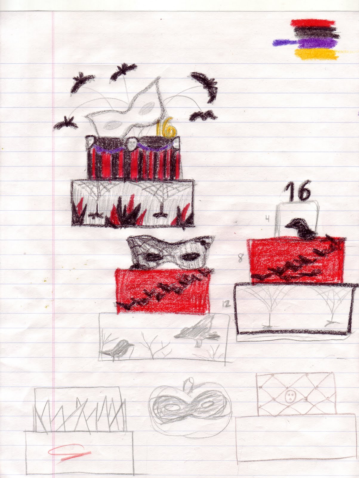 Here are the sketches I made of the cake. I had a few different ideas.